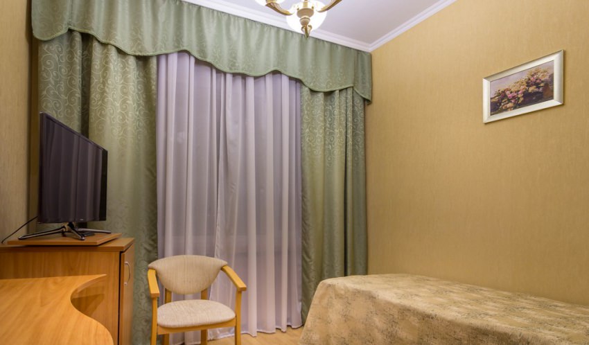 Площадь номера - 14 кв.м. 1 осн. место. 1 доп. место. Балкон. Мебель: вешалка, зеркало, кровать односпальная, прикроватная тумбочка, стол, стул, шкаф. Оборудование: телевизор, телефон, холодильник, чайный набор посуды, электрочайник. Санузел: с душем, туалетные принадлежности, фен. Сервис: Wi-Fi бесплатно, смена полотенец, смена постельного белья, уборка номера, услуги внутренней телефонной связи.