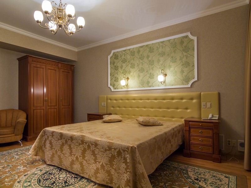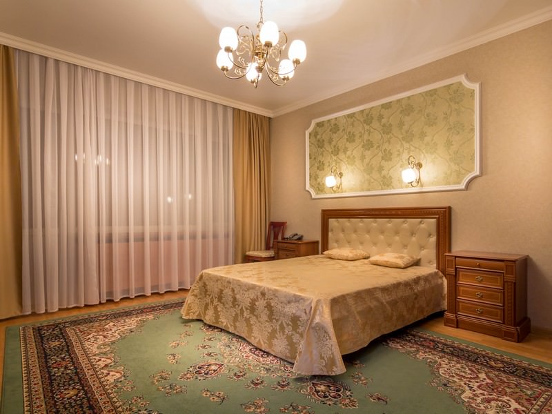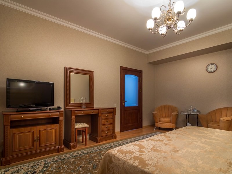 Площадь номера - 40 кв.м. 2 осн. места. 1 доп. место. Мебель: вешалка, зеркало, кровати односпальные /одна двуспальная кровать, прикроватные тумбочки, стол, стулья, шкаф. Оборудование: сейф, телевизор, телефон, холодильник, чайный набор посуды, электрочайник. Санузел: биде, с душевой кабиной, туалетные принадлежности, фен. Сервис: Wi-Fi бесплатно, смена полотенец, смена постельного белья, уборка номера, услуги внутренней телефонной связи.
